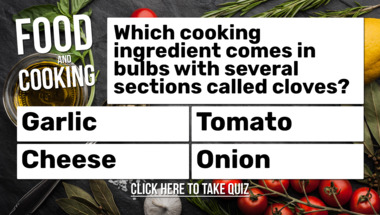 6/10 is the score to beat in this trivia quiz to put yourself over the average quiz taker. But you're probably going to be able to answer questions "Which cooking ingredient comes in bulbs with several sections called cloves?" and "What word means a sauce made from juices from cooked meat?" easy!