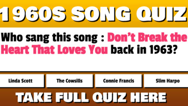 If you can answer "Who sang this song : "Don't Break the Heart That Loves You" back in 1963?" and maybe even "Who sang this song : "Break It to Me Gently" back in 1963?" there is a good chance that you're going to beat the average score of 4/10 in this trivia quiz
