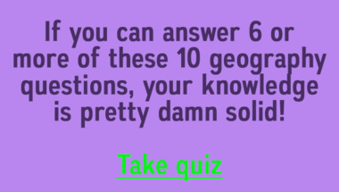If you can answer "Monaco is on which continent?" and maybe even "Which British city was the first to introduce a 'Congestion Charge' in 2003?" there is a good chance that you're going to beat the average score of 6/10 in this Geography quiz