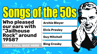 6/10 is what people on average are scoring in this trivia quiz so far. Are you ready to answer questions like "Who pleased our ears with "Jailhouse Rock" around 1958?" and "Who pleased our ears with "Que Sera, Sera (Whatever Will Be, Will Be)" around 1957?"
