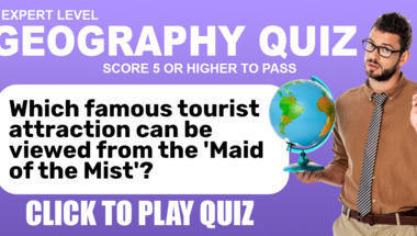 4/10 is the score to beat in this Geography quiz to put yourself over the average quiz taker. But you're probably going to be able to answer questions "What U.S. state is nicknamed "The Golden state"?" and "Which famous tourist attraction can be viewed from the 'Maid of the Mist'?" easy!