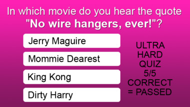 5/10 is what people on average are scoring in this trivia quiz so far. Are you ready to answer questions like "Which actress says "Love means never having to say you're sorry" in the 1970 movie?" and "Which Pacino character says "The reality is that we do not wash our own laundry - it .."