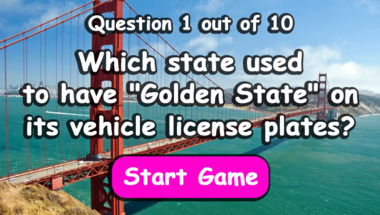 5/10 is the score to beat in this Geography quiz to put yourself over the average quiz taker. But you're probably going to be able to answer questions "What is the correct name of the glamorous suburb of Los Angeles?" and "Which state used to have "Golden State" on its vehicle license plates?" easy!