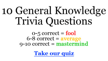 Can you beat the average score of 6/10 in this quite fun General Trivia quiz?