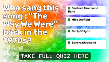 6/10 is the score to beat in this trivia quiz to put yourself over the average quiz taker. But you're probably going to be able to answer questions "Who sang this song : "The Way We Were" back in the 1970s?" and "Who sang this song : "You're In My Heart (The Final Acclaim)" back in the 1970s?" easy!