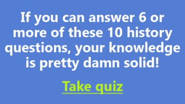 6/10 is the score to beat in this History quiz to put yourself over the average quiz taker. But you're probably going to be able to answer questions "Where did Napoleon Bonaparte suffer his last defeat?" and "In 2014, 5 people were killed in an explosion at a Mitsubishi plant in which country?" easy!