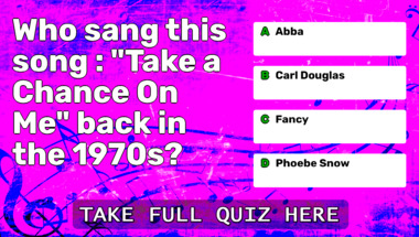 In this fun trivia quiz we're going to ask questions like "Who sang this song : "Take a Chance On Me" back in the 1970s?" and "Who sang this song : "Thank God I'm a Country Boy" back in the 1970s?".